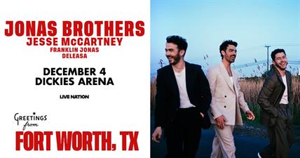 After launching their milestone ‘JONAS20: Greetings From Your Hometown’ tour in August and playing sold-out shows across the U.S. and Canada, Jonas Brothers announced additional North American dates today including a stop to Dickies Arena on Thursday, December 4th. Jesse McCartney will join as a special guest along with Franklin Jonas and Deleasa.