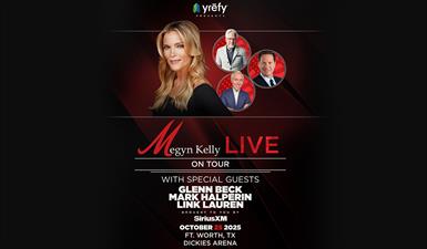 Megyn Kelly announced today that she will be hitting the road with her first ever nationwide tour, “Megyn Kelly LIVE,” bringing the highly successful show “The Megyn Kelly Show” to live audiences to react to the latest in news, culture, and more. Presented by Yrefy.com and brought to you by SiriusXM, Kelly will be joined by some of the most influential speakers of our time including Glenn Beck, Mark Halperin and Link Lauren in Fort Worth at Dickies Arena on Saturday, October 25.